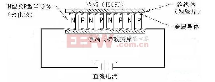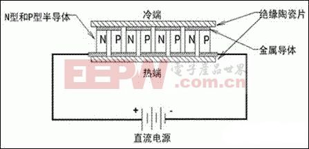 半导体制冷也称热电制冷,是从50年代发展起来的一门介于制冷技术和半导体技术边缘的学科,它利用特种半导体材料构成的P-N结,形成热电偶对,产生帕尔帖效应。
